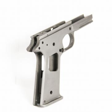 Combining the versatility of an integal magwell with our built in rail provides the tactical shooter with the most advanced 1911 receiver on the market. Standard 360° race ready magwell or our optional open front Tactical version. Specify arched or flat mainspring housing.